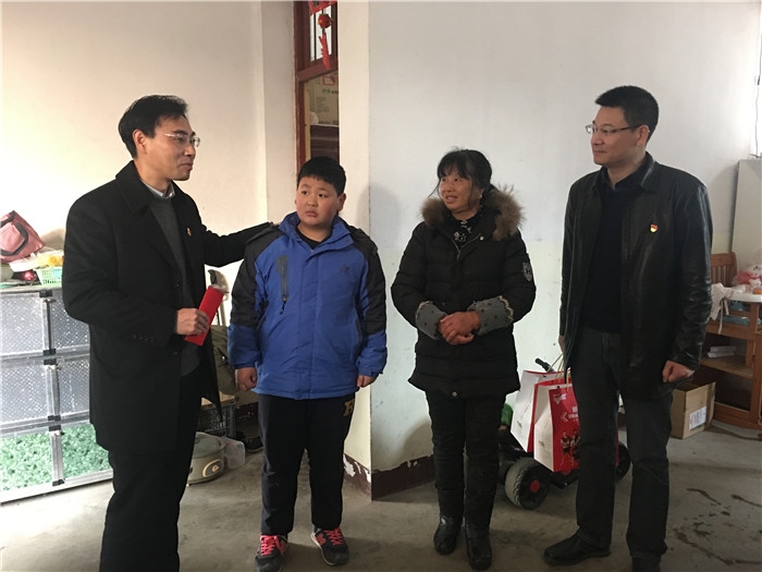 ??? 12月17日上午,醫(yī)院行政片支部一行人前往柯城區(qū)姜家山鄉(xiāng)前徐村看望慰問結(jié)對幫扶的學(xué)子——姜家山小學(xué)四年級學(xué)生陳振宇。院黨委書記徐天才、黨委委員程科云作為支部一員參與了主題黨日活動。