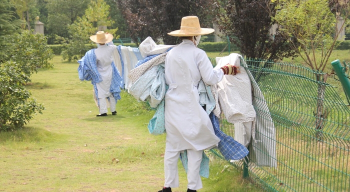 ????談話間,姜阿姨發(fā)現(xiàn)收衣服的時間到了,便戴上草帽,叫上了其他女工一起趕去曬衣場?!拔覀冊缟?點半就要到這里,下午5點半下班,中間幾乎沒空閑的時間?!?/DIV>
