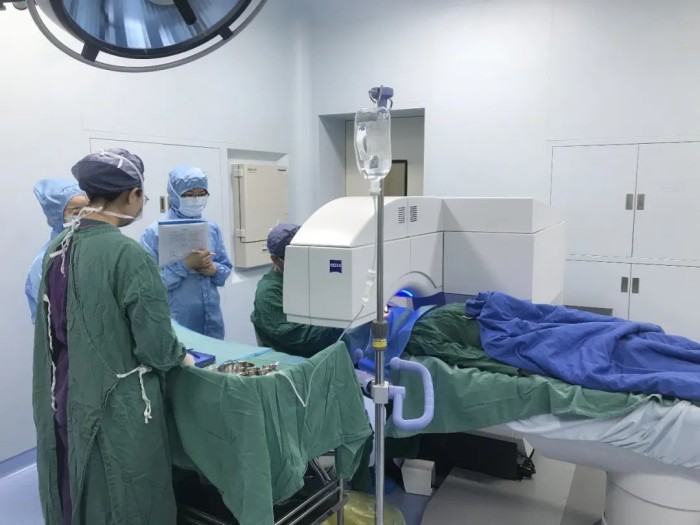 在我院手術(shù)室內(nèi),溫州醫(yī)科大學(xué)眼科學(xué)教授余野正在為患者進(jìn)行全飛秒手術(shù)。