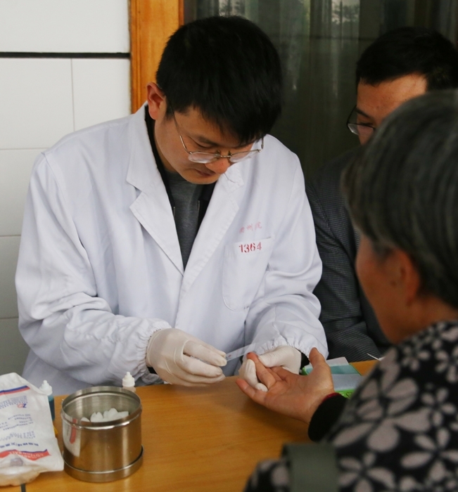 圖為專家在為居民測血型