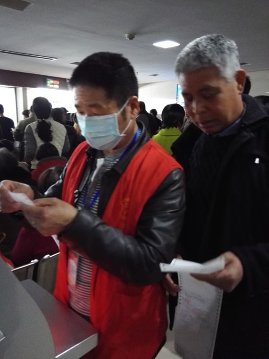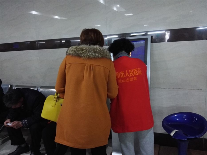 ??? 翁文淵、李淑英、吳建珍、胡美華、劉雪珍、豐學(xué)謙等6人在衢州市人民醫(yī)院做志愿者,主要來自社會志愿者。 志愿者們主要為患者指路引導(dǎo),陪伴行動不便、年老體弱患者就診,指導(dǎo)患者自助服務(wù)機(jī)使用方法,引導(dǎo)患者化驗前取號、打印化驗單,協(xié)助門診大廳工作人員疏導(dǎo)病人。