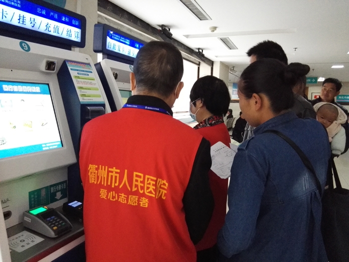??? 劉靜彩、丁潔元、許小風(fēng)、徐靜、譚惠娟、周素珍、劉靜彩、徐少君、鄭紅娟、朱厚清、羅益芳、毛菊仙、楊君梅、邱武佩、洪波、葉根倪、潘正照等17人在衢州市人民醫(yī)院做志愿者,他們累計(jì)服務(wù)時(shí)間600余小時(shí)。志愿者們主要在門(mén)診大廳一樓至五樓接受患者咨詢、引導(dǎo)自助服務(wù)機(jī)使用方法、流動(dòng)服務(wù),幫助身體虛弱及身心障礙者等提供引導(dǎo)、協(xié)助門(mén)診大廳工作人員疏導(dǎo)病人。