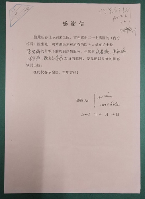 感謝信(致內(nèi)分泌科) 文章來(lái)源: 作者: 點(diǎn)擊數(shù):6846 更新時(shí)間:2015-02-12 上一篇: 感謝信 下一篇: 感謝信(致余俊華醫(yī)生)