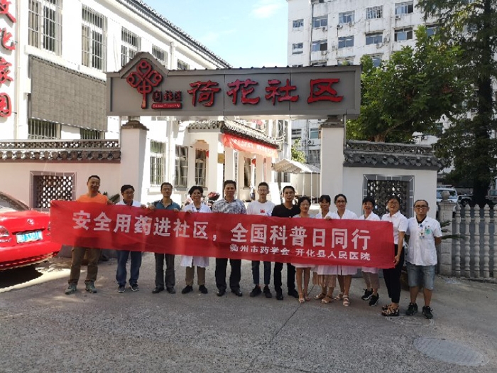 ??? 為了以“安全用藥”科普宣傳為己任,緊扣“創(chuàng)新引領(lǐng)時(shí)代,智慧點(diǎn)亮生活”主題,9月19日,“安全用藥進(jìn)社區(qū),全國(guó)科普日同行”活動(dòng)在開化荷花社區(qū)舉行。本次活動(dòng)由衢州市藥學(xué)會(huì)主辦、我院、開化縣人民醫(yī)院承辦、開化縣荷花社區(qū)、開化縣藥學(xué)會(huì)協(xié)辦。