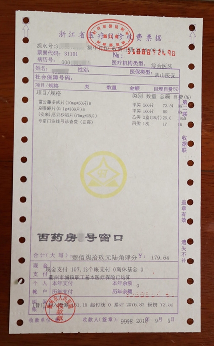 ??? 劉女士是衢州人,目前在杭州蕭山某超市工作,因患有慢性腎病,需要長期服藥,病情穩(wěn)定。