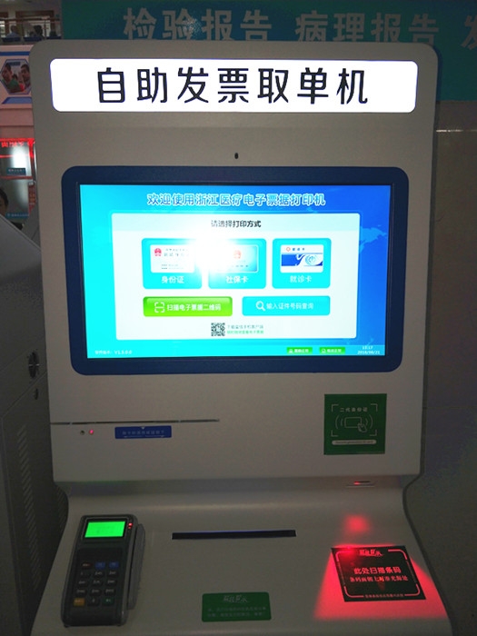 ??? 據(jù)悉,目前我院已在門診大廳投放兩臺自助發(fā)票取單機(jī),凡診間結(jié)算、醫(yī)快付結(jié)算和自助結(jié)算后,市民在自助發(fā)票取單機(jī)上均可自助打印發(fā)票,目前已開通以下五種方式打印發(fā)票:身份證、社???、就診卡、掃描電子票據(jù)、手動輸入病歷號。