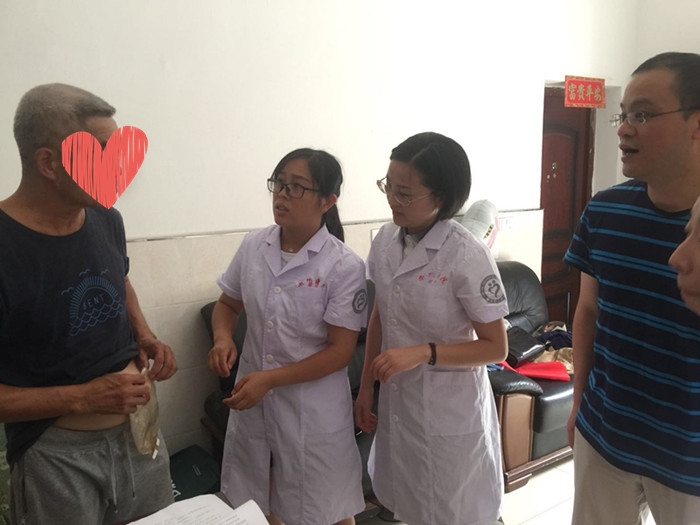 ??? 四位醫(yī)護人員分別走訪了姜家山鄉(xiāng)和廿里鎮(zhèn)文塘村,對患者的情緒、飲食、休息、活動、排泄、家庭支持等進行全面了解。主刀醫(yī)生詳細詢問患者病情,查看造口狀態(tài),耐心講解防治知識,告知復查時間等。同行的王霞護士長和專科護士對患者護理造口中遇到的問題予以指導,詳細介紹造口護理注意事項預(yù)防并發(fā)癥的發(fā)生。