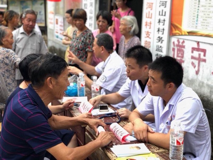 ??? 除了在主城區(qū)開展公益義診外,我院內(nèi)科二黨支部的志愿者們一早驅(qū)車來到柯城區(qū)溝溪鄉(xiāng)河山村,送醫(yī)送健康下鄉(xiāng),給當(dāng)?shù)乩习傩諑デ星袑?shí)實(shí)的福利。