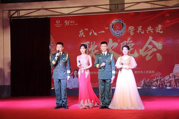??? 在建軍九十一周年即將來(lái)臨之際,一場(chǎng)由我院和市消防支隊(duì)、市東方集團(tuán)有限公司聯(lián)合舉辦的慶“八一”警民聯(lián)歡晚會(huì)在這里隆重舉行。干部職工與官兵們同臺(tái)獻(xiàn)藝,共慶節(jié)日。