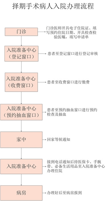 ??? 目前,除了感染科、兒科、ICU外,其余病區(qū)均可在入院準備中心辦理入院手續(xù)。入院準備中心適宜擇期手術的患者,直接入院患者及日間病房患者也可辦理。