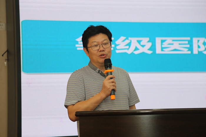 ??? 7月18日上午,召開了等級(jí)醫(yī)院評(píng)審現(xiàn)場(chǎng)評(píng)價(jià)輔導(dǎo)啟動(dòng)會(huì),國(guó)家衛(wèi)健委醫(yī)院管理研究所專家組組長(zhǎng)曹壯介紹了評(píng)審專家及輔導(dǎo)工作安排,我院院長(zhǎng)陳震宏介紹了醫(yī)院概況及等級(jí)醫(yī)院復(fù)審工作開展情況。