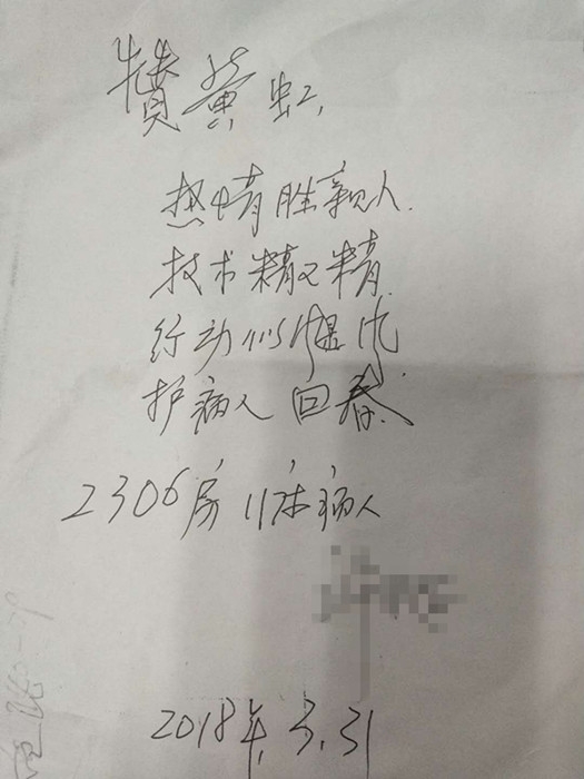 ??? 一封手寫的感謝信讓我們看到,在平凡的工作中,醫(yī)護(hù)人員用耐心真誠(chéng)能與患者建立良好的醫(yī)患關(guān)系。