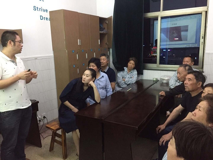??? 面對上門咨詢的病人,他總會細(xì)心查看,耐心解答。即使是碰到晚下班,他也會放棄午休時間,準(zhǔn)時出現(xiàn)在魚頭塘村會議室。每周大概接待3-5批次病人,目前共服務(wù)100余位病人。他還自費(fèi)600多元為自己做了一塊廣告牌,貼在村會議室門口,他說:怕有些村民等太久,上面有我的微信號,如果他們沒看到我,可以掃描我的微信二維碼,這樣可以隨時和我交流。