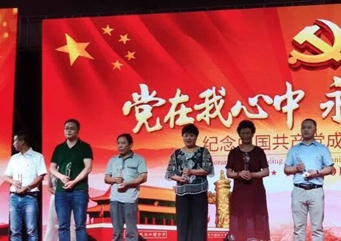 ??? 廖圣被廿里鎮(zhèn)黨委評為“最美廿里人”(左二)