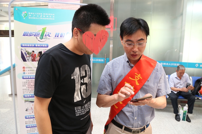 ??? 為了讓患者看病少排隊、付費更便捷、檢查少跑路。6月13日,我院推出貼心服務(wù)——組織工作人員在門診一樓大廳推廣線上全流程移動就醫(yī)服務(wù)。
