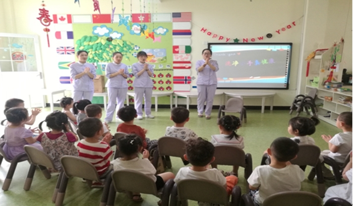 ??? 養(yǎng)成良好的手衛(wèi)生個(gè)人衛(wèi)生習(xí)慣是把住病從口入的第一關(guān)。6月14日,我院輸液室的護(hù)士來(lái)到柯城區(qū)裕豐國(guó)際幼兒園,開(kāi)展了 “兒童手衛(wèi)生——手互健康” 的公益活動(dòng)。