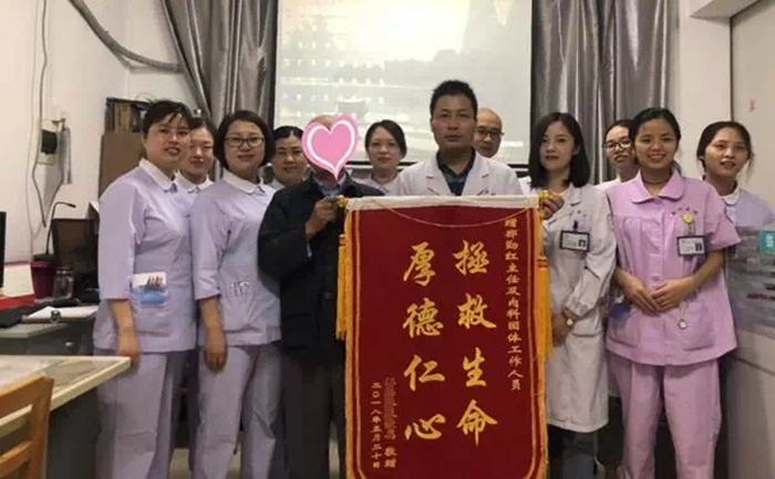 ??? 5月21號一大早,腫瘤內(nèi)科病房的走廊響起了老汪那略帶沙啞的嗓音:“一面遲到的錦旗送給你們,來回這里三個年頭了,早就成一家人啦!”