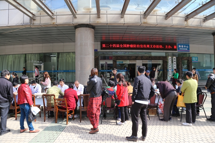 ??? 4月15日至21日是第24屆全國腫瘤防治宣傳周,主題為“科學抗癌,關愛生命”,副主題為“抗癌路上,你我同行”。4月15日,衢州市抗癌協(xié)會、衢州市醫(yī)學會腫瘤分會、我院組織腫瘤中心、中醫(yī)科、營養(yǎng)科等專家在門診樓前廣場開展了腫瘤宣傳義診活動。