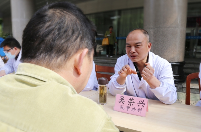 ??? 醫(yī)護人員為前來檢查和咨詢的群眾答疑解惑,講解健康人群及高危人群的精準基因檢測及腫瘤患者個性化用藥指導常識。同時發(fā)放腫瘤預防及診療手冊等健康宣教材料,普及腫瘤知識。