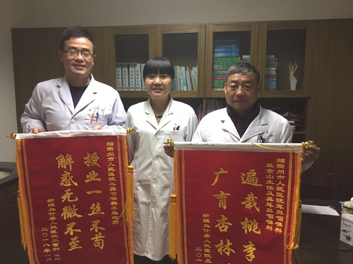 ??? 第九批“衢烏一家親醫(yī)療隊”的援疆醫(yī)生李勝,是我院耳鼻喉科的醫(yī)生,在援疆期間,焦玲是他的徒弟。李勝介紹,為響應衢州市援疆指揮部和市衛(wèi)計委提出的“智力援疆”的號召,援疆指揮部結合前幾批的援疆經(jīng)驗,提出“精準傳幫帶”的概念,即有計劃地讓援疆醫(yī)生分批把徒弟帶回衢州,有針對性地進行“一對一、手把手”的師徒緊密型集中訓練,打造一支帶不走的援疆醫(yī)療隊。