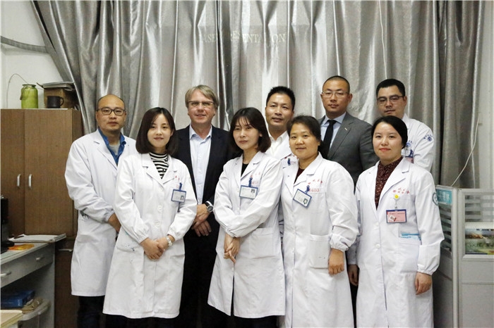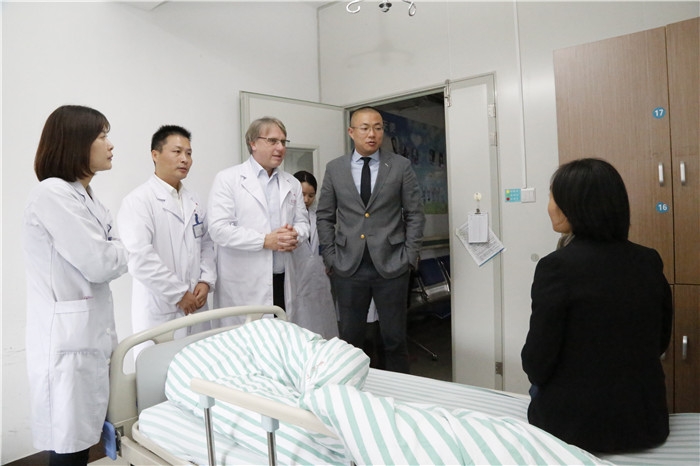 ??? Kohne教授主要擅長(zhǎng)胃腸腫瘤及血液腫瘤治療,這次來中國(guó)主要是ESMO胃腸腫瘤巡講。當(dāng)日,Konhe教授在我院腫瘤內(nèi)科病房進(jìn)行查房,期間與科室醫(yī)務(wù)人員親切交談,對(duì)于腫瘤內(nèi)科的診療技術(shù)表示了肯定。