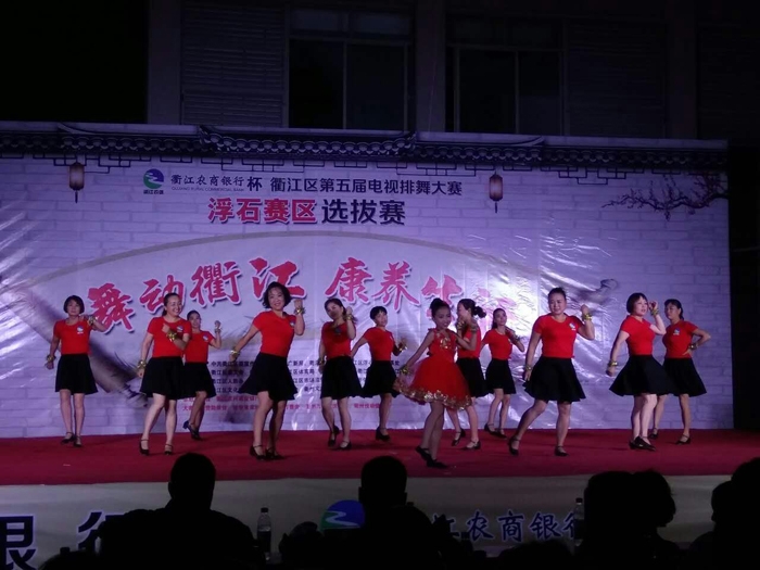 ??? 8月15日晚上六點半,“舞動衢江,康養(yǎng)生活”衢江區(qū)第五屆電視排舞大賽浮石賽區(qū)開賽,民建醫(yī)院支部會員前往現(xiàn)場助陣。