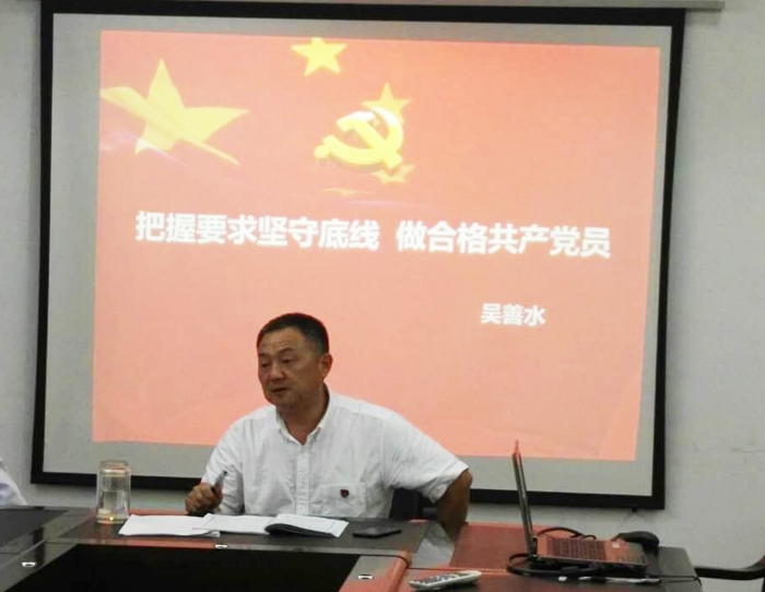 ??? 院黨委副書記、紀(jì)委書記吳善水組織學(xué)習(xí)了省第十四次黨代會精神并為全體支委上了一堂生動的《把握要求堅守底線 做合格共產(chǎn)黨員》的黨風(fēng)廉政課。