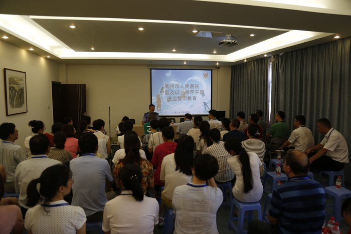 ??? 為了深入開展黨的群眾路線教育實(shí)踐活動(dòng),進(jìn)一步加強(qiáng)黨風(fēng)廉政建設(shè),切實(shí)提高干部職工的廉政自律意識(shí)和拒腐防變能力, 7月13日和14日下午,我院組織中層及以上干部和關(guān)鍵崗位的工作人員共120余人到衢州市十里豐監(jiān)獄開展廉潔自律警示教育活動(dòng)。