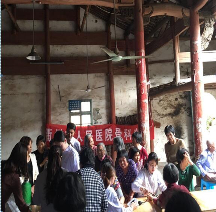 ??? 聽(tīng)說(shuō)有專(zhuān)家來(lái)了,村民們成群結(jié)隊(duì)地來(lái)到汪氏祠堂,排著長(zhǎng)隊(duì)等候。醫(yī)護(hù)人員在現(xiàn)場(chǎng)耐心地給村民進(jìn)行查體和講解疾病預(yù)防知識(shí),測(cè)量血壓。同時(shí),還向在場(chǎng)的鄉(xiāng)親們介紹了骨科最新開(kāi)展的新項(xiàng)目、新資訊,并進(jìn)行四肢功能鍛煉、日常保健等方面的指導(dǎo)。
