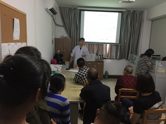 ??? 5月15日下午,我院內分泌科示教室內座無虛席,還有站著認真聽課的醫(yī)學院見習生。我院營養(yǎng)科的營養(yǎng)師給住院的糖尿病患者進行系統(tǒng)的飲食教育講座。