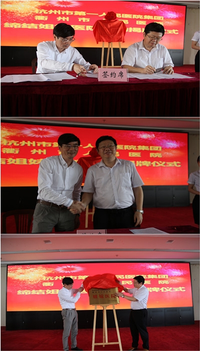 ??? 繼5月22日與浙江大學(xué)醫(yī)學(xué)院附屬第二醫(yī)院、浙江大學(xué)醫(yī)學(xué)院附屬口腔醫(yī)院結(jié)成醫(yī)聯(lián)體后,我院迎來了又一利好消息!5月24日上午,杭州市第一人民醫(yī)院集團(tuán)和衢州市人民醫(yī)院締結(jié)姐妹醫(yī)院簽約揭牌儀式隆重舉行。
