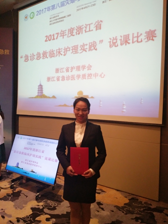 ??? 為推廣“急診急救臨床護(hù)理實(shí)踐”知識(shí),促進(jìn)急診臨床護(hù)理師資隊(duì)伍建設(shè),提高急診帶教老師業(yè)務(wù)素質(zhì)和臨床教學(xué)水平,4月21日下午,由浙江省護(hù)理學(xué)會(huì)、省急診醫(yī)學(xué)質(zhì)控中心共同舉辦的浙江省 “急診急救臨床護(hù)理實(shí)踐”說(shuō)課比賽在杭州舉行,來(lái)自全省各級(jí)醫(yī)院的32位選手參加了本次比賽,我院急診科護(hù)士王笑笑代表衢州市參加此次比賽,并獲得三等獎(jiǎng)。