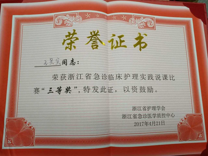 我院王笑笑獲浙江省“急診急救臨床護(hù)理實(shí)踐”說(shuō)課比賽三等獎(jiǎng)