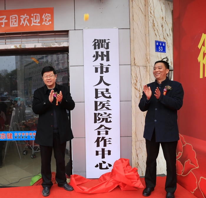 ??? 市衛(wèi)計委黨委委員張福俊和我院院長陳震宏共同為“衢州市人民醫(yī)院合作中心”揭牌。