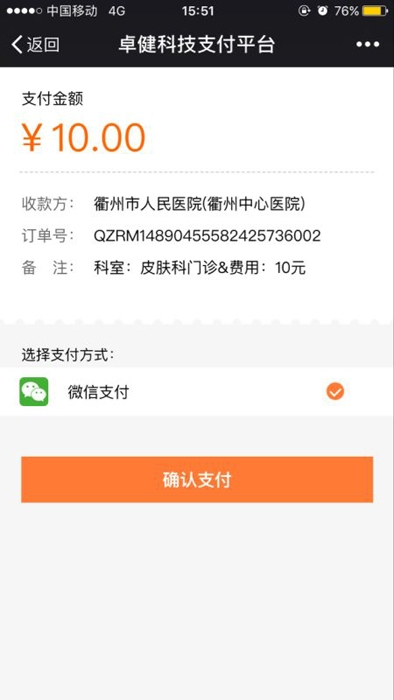 ??? 在這春意盎然之季,我院攜手卓健科技公司于03月08日-04月08日傾情推出微信支付溫暖活動(dòng),使用“衢州市人民醫(yī)院衢州中心醫(yī)院”微信服務(wù)號(hào)進(jìn)行當(dāng)日掛號(hào)費(fèi)用的支付,都能100%享受優(yōu)惠,且可縮短排隊(duì)時(shí)間,提高就診效率,讓就醫(yī)看病變得簡(jiǎn)單又快捷。趕緊來(lái)體驗(yàn)一下吧!