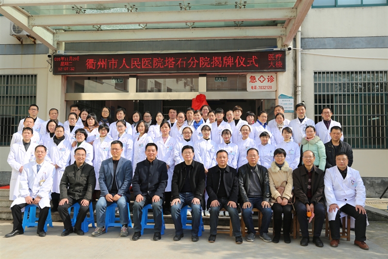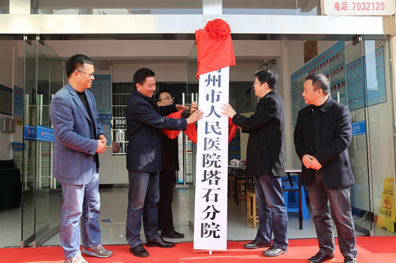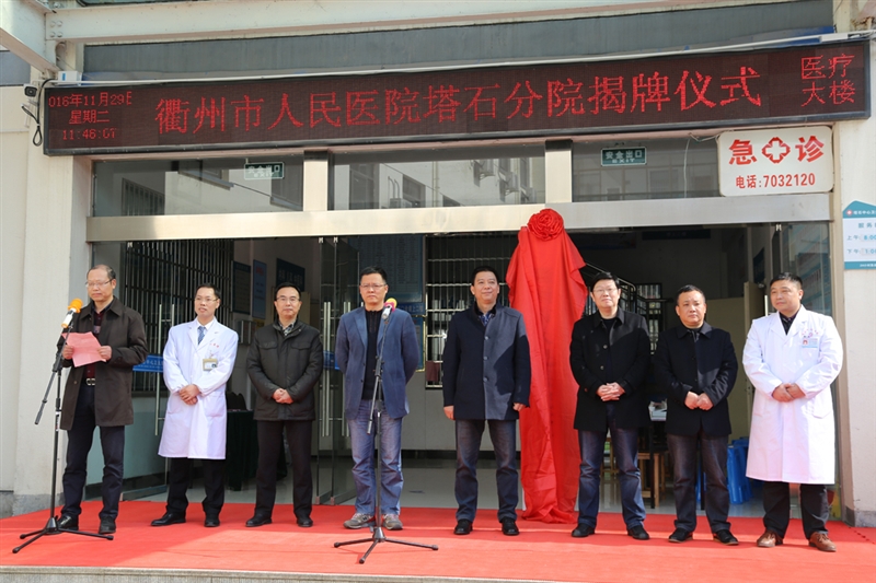 ??? 市衛(wèi)生計生委黨委委員張福俊、龍游縣衛(wèi)生計生局局長丁俊、市人民醫(yī)院院長陳震宏和塔石鎮(zhèn)書記汪立云共同為“衢州市人民醫(yī)院塔石分院”揭牌。