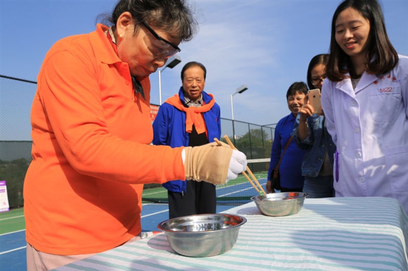 ??? 這是我院專門為糖友們設(shè)計的趣味運動會。糖友們戴著專用眼睛和手套,以模擬糖尿病并發(fā)癥給身體帶來的干擾。這樣的趣味運動會,既提高了糖友們對糖尿病的認識,又為他們提供了一個相互交流、相互激勵的平臺。
