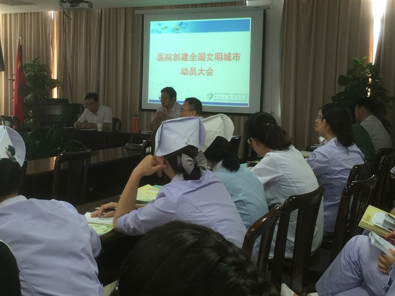 ??? 黨委書記徐天才指出強調,要在全院營造文明創(chuàng)建氛圍,做到全員動員,人人知曉,人人參與。院長陳震宏最后強調,下步將由院領導帶隊強化督查,各部門要一如繼往地做好創(chuàng)建工作,嚴格按照工作要求,細化措施,做好自助服務引導、服務態(tài)度、健康宣教等工作,確??荚u要求逐一落實到位。