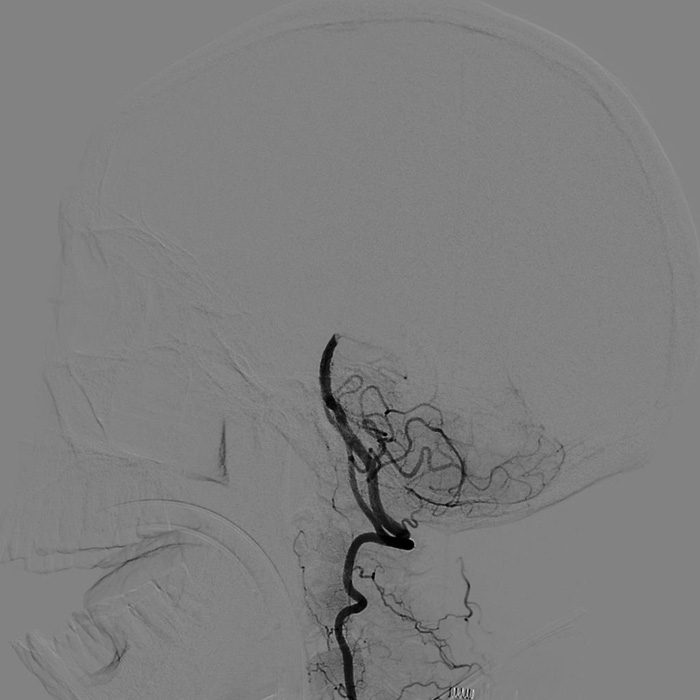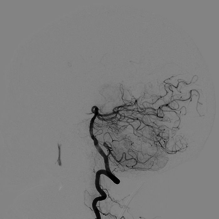 取栓后造影顯示雙側(cè)小腦上動脈及雙側(cè)大腦后動脈充盈良好