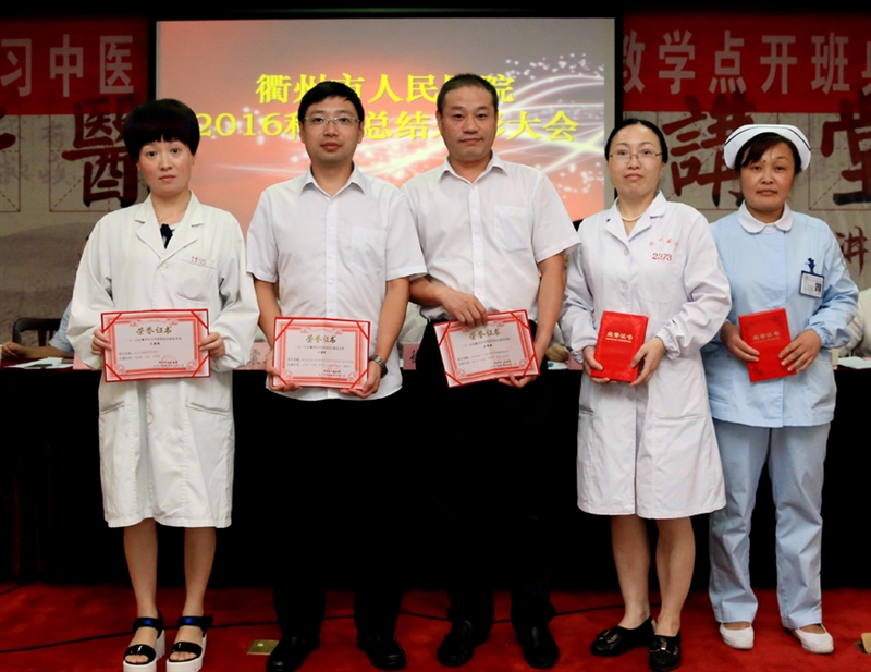 ??? 副院長(zhǎng)胡建邦宣讀表彰文件,院領(lǐng)導(dǎo)為市科技進(jìn)步獎(jiǎng)、醫(yī)院醫(yī)療新技術(shù)獎(jiǎng)、科研論文獎(jiǎng)、科技立項(xiàng)獎(jiǎng)、優(yōu)秀教研室、優(yōu)秀教學(xué)科室、優(yōu)秀臨床帶教老師、優(yōu)秀授課老師及優(yōu)秀本科生導(dǎo)師等獲獎(jiǎng)個(gè)人和集體頒發(fā)了榮譽(yù)證書(shū)。??