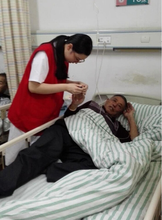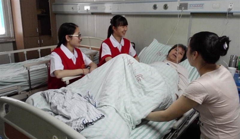 ??? “大伯,要掛號嗎?請到自助掛號機這邊來,我教您怎樣操作?!被颊哂幸蓡枙r,志愿者前來解答;患者排隊時,志愿者幫助疏導;患者不理解時,志愿者耐心解釋;患者行動不便時,志愿者上前攙扶。以往,在門診大廳里,活躍著身穿“紅馬甲”的志愿者身影。如今,志愿者活動延伸到了病房,為患者提供著各類志愿服務:幫忙看護、陪伴病人、護送病人檢查等,向他們表達關懷和鼓勵。