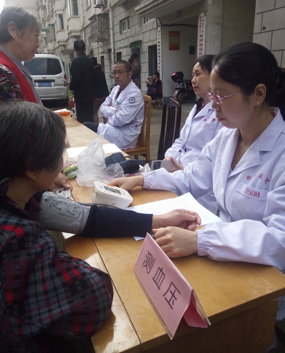 ??? 為提高社區(qū)居民的健康水平,增強(qiáng)居民的健康保護(hù)意識(shí),讓社區(qū)居民們?cè)诩议T口享受到免費(fèi)醫(yī)療保健服務(wù)。5月11日上午,衢州市人民醫(yī)院神經(jīng)內(nèi)科主任林海燕、內(nèi)分泌代謝病科主任胡朝暉、呼吸內(nèi)科副主任姜建洋及基層衛(wèi)生指導(dǎo)科等醫(yī)護(hù)人員來(lái)到衢江區(qū)樟潭街道霞飛社區(qū)開(kāi)展義診活動(dòng)。
