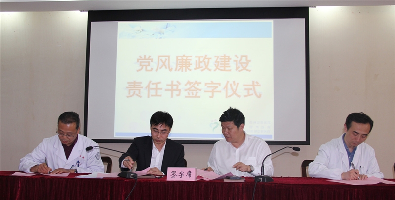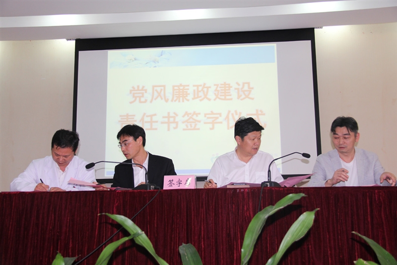 ??? 院長陳震宏、黨委書記徐天才與內(nèi)科片、外科片、重癥醫(yī)學(xué)科、藥學(xué)部、設(shè)備處、信息處等科室代表簽訂2016年黨風(fēng)建設(shè)和廉政反腐工作責(zé)任書,逐一落實責(zé)任,同時要求,全院干部職工要明確責(zé)任,履職盡責(zé),勇于擔(dān)當(dāng),大力營造遵規(guī)守紀(jì)、風(fēng)清氣正、干事創(chuàng)業(yè)的行業(yè)氛圍。