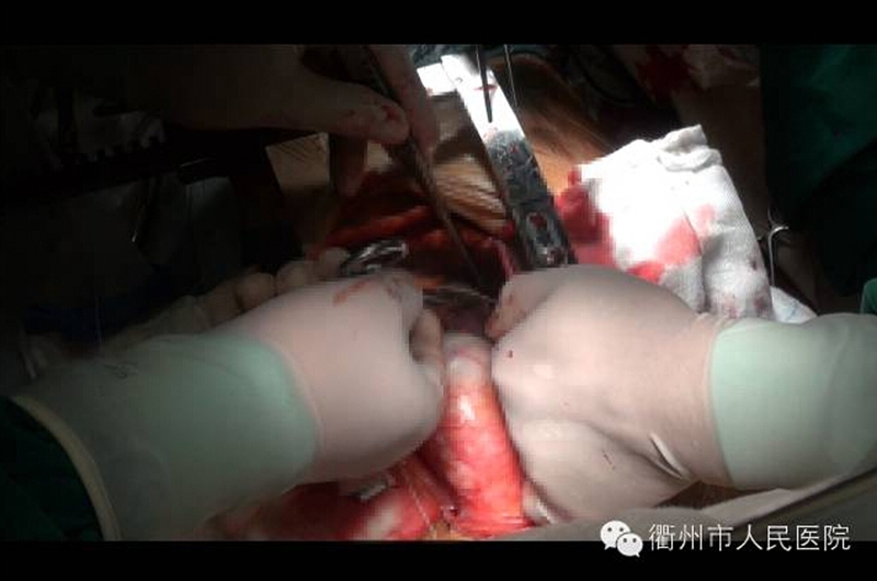 ??? 經(jīng)過精心的術(shù)前準備,3月13日,由浙一醫(yī)院心外、麻醉、體外循環(huán)、監(jiān)護組成的5人專家團隊和我院心胸外科團隊一起,為杜女士實施手術(shù)。全麻建立體外循環(huán)后,手術(shù)按原方案順利進行,然而切開瘤樣擴張直徑達7.2厘米的升主動脈時發(fā)現(xiàn),主動脈瓣葉上布滿了贅生物,病情比術(shù)前想象的要復雜得多:患者同時有感染性細菌性心內(nèi)膜炎伴贅生物形成!病情復雜,給手術(shù)增加了難度,對術(shù)后康復及遠期療效都是一個嚴峻的挑戰(zhàn)。知難而上!經(jīng)過專家團隊和我院心胸外科、麻醉科、手術(shù)室等醫(yī)護人員的密切配合與積極處置,歷經(jīng)6個小時,手術(shù)順利完成。