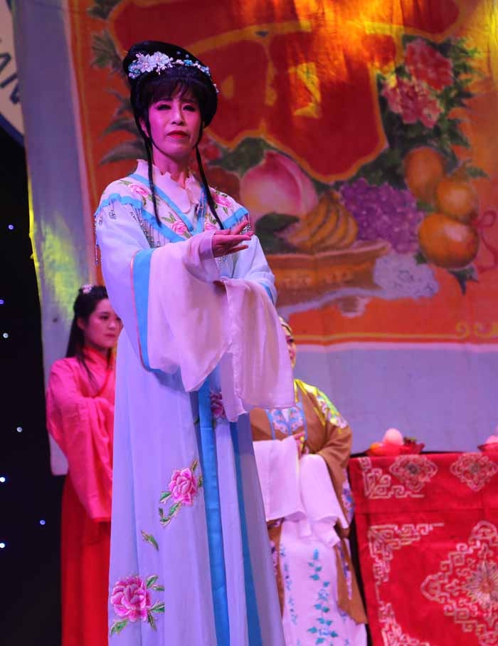 越劇俱樂部雖然成立不久,但是他們獻上的《五女拜壽》專業(yè)性極強,演員在舞臺上的一顰一笑,一招一式,韻味十足,讓廣大越迷們過足了癮。
