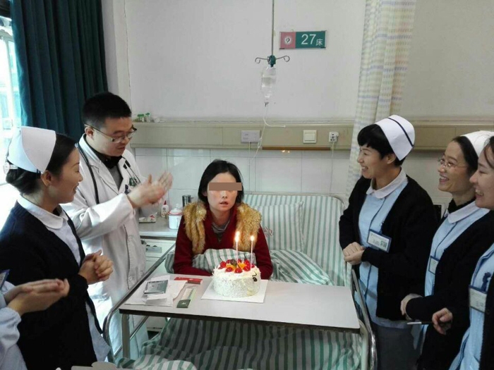 ??? “葉蕾(化名),您感覺好些了嗎?今天精神狀態(tài)還不錯哦!”,12月3日一早,我院血液科呂紅姣護士長帶領(lǐng)科室醫(yī)護人員來到了患者葉蕾床前,正當病人和家屬以為這只不過是一次例行查房時,主管醫(yī)師王剛提著生日蛋糕,輕輕來到病床前。