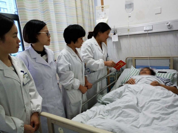 ??? 當(dāng)夏利花把愛心款交到黃大姐的手上時(shí),她和丈夫都激動(dòng)不已。黃大姐說:“夏醫(yī)師,從我第一次住院手術(shù)到現(xiàn)在,你一直都這么好,現(xiàn)在讓我說什么好呢?哎,我該怎么感謝你......”她的丈夫靜靜地站在旁邊,一直念叨:“謝謝,謝謝你們”。