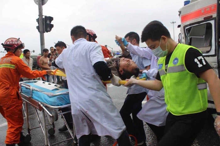 ????面對突如其來的撞擊,一瞬間讓急救車上的所有人不知所措。診療臺、氧氣罐側翻,玻璃碎片散落一地……車門已經(jīng)被擠壓變形,車上人員根本無法逃離?;颊呒覍僖荒橌@慌,“醫(yī)生,怎么辦?怎么辦?我害怕,救救我……”手足無措的她緊緊拉著劉龍群的手?!耙坏┭鯕夤薨l(fā)生爆炸,后果將不堪設想?!眲埲旱男念^也閃現(xiàn)了一絲恐懼,“不要害怕,我會在車上一直陪著你……” 他馬上安撫患者家屬?!袄潇o,救人要緊”,他在狹小的車廂內,艱難地將側翻壓在患者身上的診療臺推開,擦去患者臉上的玻璃碎渣,檢查生命體征……那一刻,職業(yè)的操守讓劉龍群在危難時刻來不及片刻的猶豫。