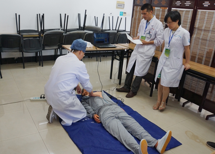 本次臨床技能結(jié)業(yè)考核為“五站式”考核,考核分病史采集和體格檢查、病歷分析、基本技能操作、專(zhuān)科技能操作、病歷書(shū)寫(xiě)五項(xiàng)內(nèi)容??忌凑辗纸M順序,依次交叉進(jìn)行各個(gè)站點(diǎn)的考核,通過(guò)各專(zhuān)科基地負(fù)責(zé)人及骨干的共同努力以及全體考核專(zhuān)家和工作人員的嚴(yán)謹(jǐn)工作,考核工作有條不紊地進(jìn)展??荚囘^(guò)程中省、市巡考考官對(duì)整個(gè)考場(chǎng)布置,考試安排,考核過(guò)程逐個(gè)考場(chǎng)進(jìn)行了巡查,對(duì)我院考試組織工作給予了充分的肯定。與此同時(shí),我院招募并精心挑選了37名住院醫(yī)師協(xié)助此次考核工作,他們一部分作為引導(dǎo)員,帶領(lǐng)考生到各個(gè)考場(chǎng),保障考場(chǎng)紀(jì)律,全程參加考務(wù)準(zhǔn)備工作,熟悉整個(gè)考試流程;還有12名作為標(biāo)準(zhǔn)化病人,配合考生進(jìn)行病史采集和體格檢查站考核,最大程度的保證了結(jié)業(yè)考核工作的順利開(kāi)展。