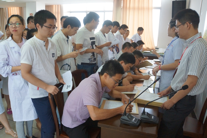 7月28日---30日,我院順利開(kāi)展了2015年浙江省住院醫(yī)師規(guī)范化培訓(xùn)臨床技能結(jié)業(yè)考核。本次考核共有來(lái)自衢州市各個(gè)培訓(xùn)基地及金華、麗水耳鼻咽喉科共11個(gè)學(xué)科108名住院醫(yī)師參加,由本市各家醫(yī)院的62名專(zhuān)家擔(dān)任此次結(jié)業(yè)考核的考官。